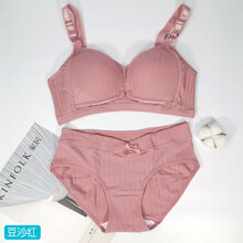 十月结晶 商场同款孕妇内衣内裤套装怀孕期女哺乳文胸聚拢防下垂喂奶内裤前开扣胸罩 豆沙红 75/34+M