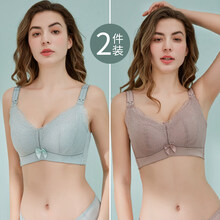 十月结晶 商场同款哺乳文胸聚拢防下垂无痕喂奶专用罩女孕妇内衣怀孕期纯棉薄款夏季 灰蓝色+藕粉色 75B