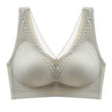 SC 哺乳文胸 孕妇产后舒适内衣女无钢圈聚拢小胸显大蕾丝美背薄款无痕背心文胸Y966 灰色 32