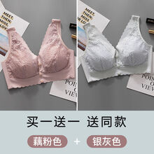 哺乳内衣 哺乳内衣聚拢防下垂孕妇文胸背心式喂奶产后怀孕期胸罩纯棉秋冬楠 (蕾丝背心款)藕粉色+银灰色 M