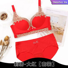 孕妇内衣胸罩怀孕期 哺乳文胸罩小胸加厚孕妇内衣怀孕期产后女母乳聚拢防下垂喂奶bra 刺绣大红(套装) 36/80C(薄)