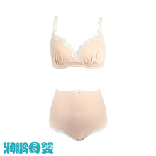 INUJIRUSHI|犬印本铺孕期专用孕妇内衣套装孕妇无钢圈哺乳文胸+孕妇内裤 米色+米色 M