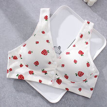 背心哺乳文胸聚拢防下垂纯棉薄款孕妇内衣怀孕期产后喂奶舒适胸罩 白色草莓 M(90-110斤)34/75