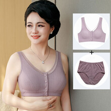春夏薄款妈妈内衣纯棉文胸中老年人无钢圈胸罩妇女老人全棉加肥加大码前扣胖妈妈背心哺乳胸衣肥佬内裤套装 7739香芋紫 文胸1+内裤2套装 3XL下胸围...