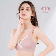 摩登孕妈哺乳文胸喂无钢圈聚拢全棉奶孕妇内衣怀孕期纯棉舒适胸罩薄款 粉色 M