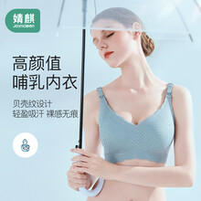 婧麒小贝壳哺乳文胸产后喂奶聚拢防下垂孕妇内衣怀孕期舒适胸罩女 灰 M