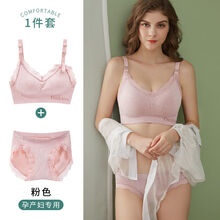 喂奶内衣哺乳内衣套装聚拢女怀孕期舒适孕妇文胸罩母乳喂奶薄款 一套彩棉粉色 XXXL 42