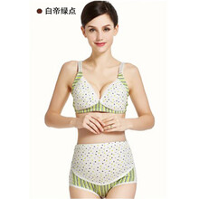 【内衣+内裤】孕妇文胸套装前开哺乳文胸高腰可调节托腹内裤春夏 白底绿点 文胸:34/75 内裤:L