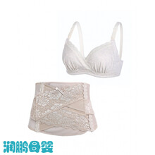 INUJIRUSHI|犬印本铺孕妇产后收腹带产后束腹带舒适居家哺乳文胸2件套 米色+灰色 S/M