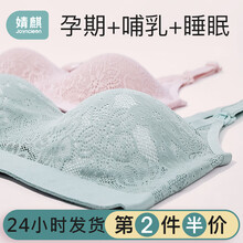婧麒(JOYNCLEON)无痕孕妇内衣怀孕期专用美背哺乳文胸聚拢防下垂夏季超薄款女 平纹蕾丝款-桑森绿【随意裁-零感无痕】 S