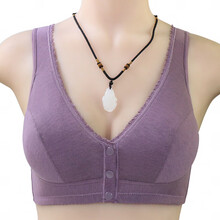 妈妈中老年文胸大号胸罩2020新款光面蕾丝雷丝边从前面扣的中老年内衣女士棉质背心式文胸无钢圈内衣女 紫灰>女土不勒宽带溥款奶奶运动女人老人...