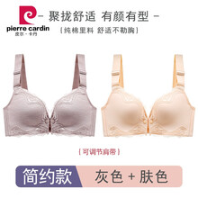 皮尔卡丹旗舰哺乳文胸聚拢防下垂母乳夏薄款纯棉喂奶前开扣舒适期美背孕妇内衣 【简约款】灰色+肤色 2件装 75B