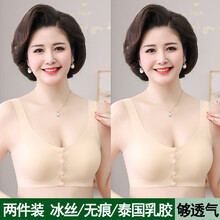 【隽燕飞】泰国乳胶前扣内衣冰丝无痕妈妈文胸女中年妇女背心式薄款中老年人防下垂收副乳聚拢胸罩夏季老人 两件装-2066(肤杏色+肤杏色) L