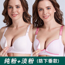 潮牌都市白色丽人2件装哺乳文胸纯棉薄款前开扣无钢圈孕妇内衣怀孕期产后喂奶胸罩 (防下垂款)纯粉+淡粉 36/80
