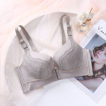 超薄款无海绵无钢圈哺乳内衣女舒适棉喂奶防下垂前开口孕妇文胸 肤色+灰色 34/75