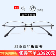 目匠 商务纯钛近视眼镜男款 防辐射眼镜半框眼镜框架超轻 62293 黑色 防蓝光配镜(1.56防蓝光镜片0-400度)