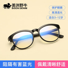 美洲野牛儿童防蓝光眼镜防辐射近视抗疲劳眼镜全框男女小孩上网课平光护目镜 黑色