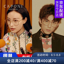 CAPONI变色防蓝光防辐射眼镜男女防雾近视眼镜抗蓝光平光手机电脑无度数金丝大框眼睛 流金框-0度无色防蓝光(买镜架也拍此项)