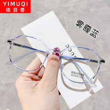 依目奇 防蓝光眼镜小红书网红款可配有度数近视眼镜女超轻多边形眼镜框男素颜显瘦韩版潮 免费配镜 雾霾蓝 防蓝光1.56非球面镜片0-400度 度数留言