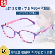 儿童防蓝光眼镜 防辐射眼镜 学生网课电脑手机护目镜男女 无度数平光近视眼镜框 保护眼睛 紫粉框(旋转镜腿+0度防蓝光镜片)