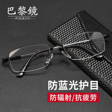 POEROY防辐射眼镜男商务半框防蓝光护目平光镜手机电脑电竞游戏眼睛抗疲劳配近视眼镜架 黑色 1.56非球面