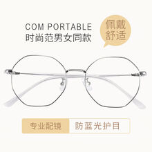 槿城眼镜女防蓝光防辐射护目平光网红ins显脸小男款多边形眼镜框无度数有镜片 银色 防蓝光
