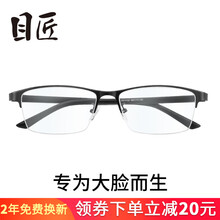 目匠 半框近视眼镜男款 防辐射眼镜框男女款大脸专用商务眼镜架大码加宽胖人 5032 黑色 防蓝光配镜(1.67防蓝光镜片0-800度)