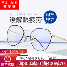 普莱斯pulais防蓝光眼镜框男防辐射近视眼镜架女配平光镜片5021 黑金 配1.61防蓝光镜片(推荐200-400度)