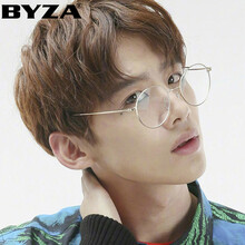 百飒鹿晗同款防辐射防蓝光眼镜 复古学院风全金属圆框眼镜框架男女学生平光镜可配近视 镍白