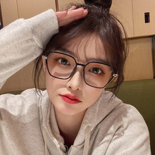 近视眼镜框防蓝光眼镜女大框圆脸护眼学生韩版显瘦近视眼睛男士有度数近视眼镜框架配镜网红同款配100度潮 黑色框 平光镜无度数( 防蓝光防辐射)