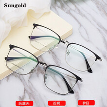 Sungold近视眼镜架男女款防蓝光镜框防辐射办公竞游金属护目镜 黑色 1.56非球面防蓝光近视订制(0-400度)