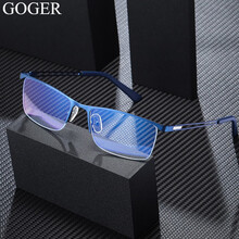 Goger近视眼镜男防蓝光商务半框金属防辐射小框配镜配度数新款 深蓝框 配1.61防蓝光镜片(建议0-500度)