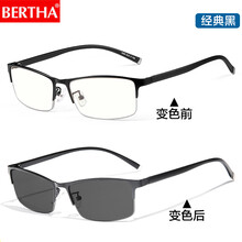 贝尔莎(BERTHA)防辐射眼镜男变色防蓝光电脑护目镜平光手机近视眼镜 经典黑 变色防蓝光- 0度平光眼镜