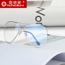 雷德蒙防辐射眼镜男护目镜抗蓝光无度数平光护眼睛框女平镜大框潮配近视 银色框(送礼盒包装) 防蓝光镜片(无度数)