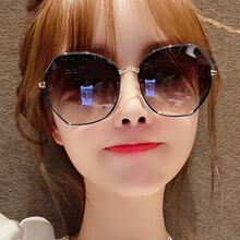 皓顿(HAUTTON)偏光太阳镜女墨镜大脸显瘦网红司机开车专用驾驶镜防辐射 金框黑圈渐变灰