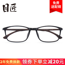 目匠 全框近视眼镜男 防辐射眼镜款男女款TR眼镜架超轻 182 亮黑木纹腿 变色配镜(1.61变灰色镜片0-800度)