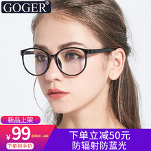 GOGER复古平光眼镜架防辐射防蓝光男女装饰大框护目电脑 亮黑色