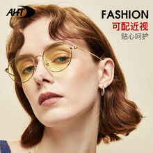 AHT防辐射眼镜圆框防蓝光眼镜女平光电脑电竞护目镜眼镜 C2金色
