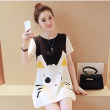 银纤维电脑工作防辐射怀孕衣服夏季中长款孕妇装连衣裙放射女 短袖白猫(送防辐射护胎宝) M