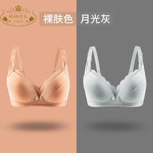 睡栖 哺乳内衣夏季薄棉杯款哺乳内衣聚拢防下垂文胸怀孕期夏季薄款产后喂奶胸罩女前开扣 2件装【裸肤色+月光灰】 95C