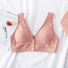 夏季孕妇内衣棉背心怀孕期文胸前开扣哺乳喂奶聚拢下垂胸罩薄 豆沙 M码 32/70