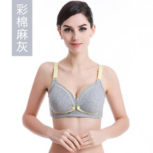 米度丽 哺乳文胸前开扣无钢圈聚拢有型喂奶孕妇内衣胸罩怀孕期哺乳内衣 麻灰 80C