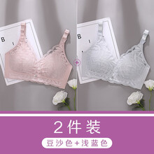 雅黛俪内衣女文胸无钢圈妈咪围可拆卸无痕光面薄棉杯2件装哺乳胸罩 浅肤+浅蓝 75B