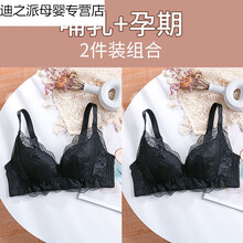 孕妇内衣怀孕期小胸哺乳文胸加厚款蕾丝喂奶防下垂前开扣聚拢胸罩 黑色+黑色 32/70【AB杯 厚罩杯】