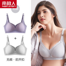 南极人旗舰专卖孕妇哺乳文胸 2件装聚拢防下垂夏季薄款棉里女喂奶前开扣浦孕妇无钢圈内衣怀孕期 【无痕】丁香紫+灰 90B