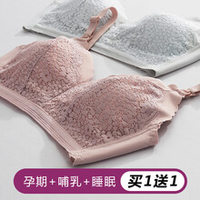 【靳兽】蕾丝小胸厚款怀孕期孕妇哺乳内衣防下垂薄款聚拢喂奶文胸母乳胸罩 卡其 32B/70B【上薄下厚】