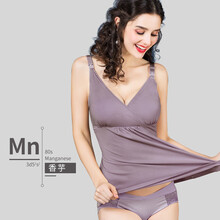 摩登孕妈 夏季哺乳吊带新款交叉舒适弹力居家喂奶服免穿文胸喂奶衣莫代尔 香芋色 M(建议80-105斤)