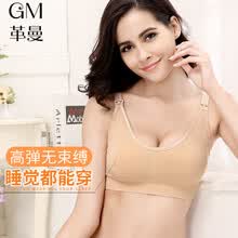 革曼 孕妇装孕妇文胸无痕无钢圈防下垂孕妇哺乳外出喂奶文胸内衣怀孕期有型上托 杏色 M