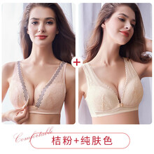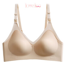 瞬将抖音同款loveloc内衣大胸聚拢文胸睡眠哺乳内衣夏薄款 肤杏色撞色提拉款 XL