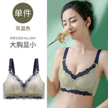南极人乳胶内衣女无钢圈大胸显小薄款聚拢收副乳防下垂乳胶文胸罩 单件装【灰蓝】 36BC/80BC